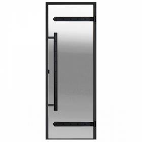 Dveře do sauny HARVIA Legend - rám je z černě obarveného borovicového dřeva a klika je vyrobena z černě natřeného tvrdého dřeva.